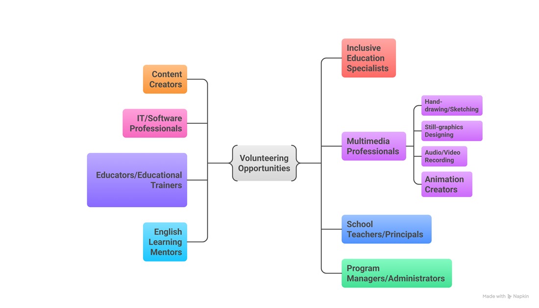 The guiding principle of SSSVV is to make human-values-infused secular and inclusive education freely available to teachers and their pupils. Leveraging technology for remote access, the program calls upon the altruistic attitude of enthusiastic volunteers with pedagogy, training, technology and particularly special education backgrounds to achieve the dream of: